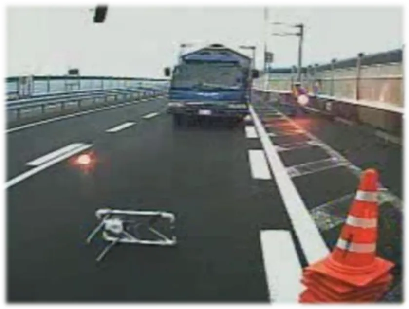 ○車線規制の作業時に進入車両がある場合の避難体験(写真4)
