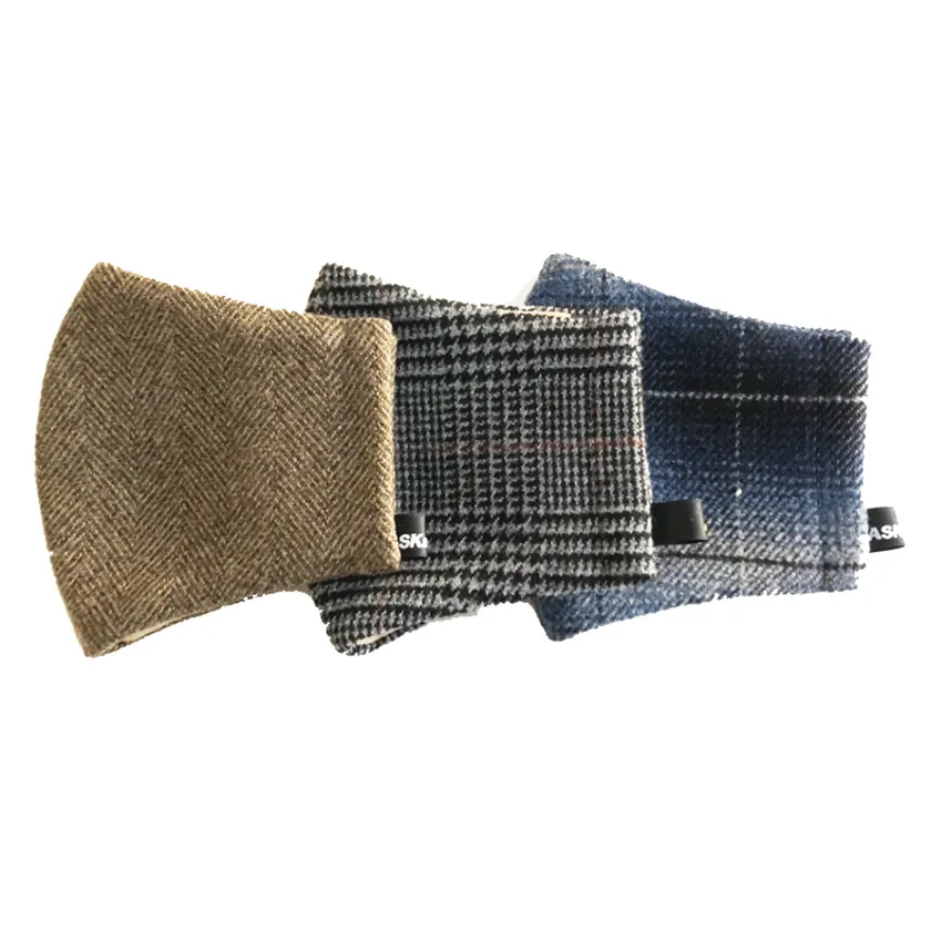 コロナ禍で縫製工場の仕事が止まってしまっていたのをきっかけに、職人さんと一緒に試行錯誤しながらマスクをつくりはじめ、今では洋服に携わる多くの職人さん達に仕事を依頼出来るようになりました。顔に付けるものなので安心感のあるものを提供するため、日本製なのはもちろん、縫製は千葉県や岐阜県など、ヒモは福井県、織ネームは栃木県など、とそれぞれの産地に直接お願いしています。