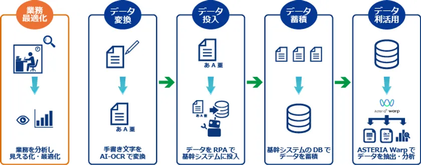 AI-OCRにより、これら“ファーストワンマイル”のデータを電子化することで、データの投入、蓄積、利活用までのライフサイクルがシームレスにつながりDX実現への大きな一歩を踏み出すことが可能となります。