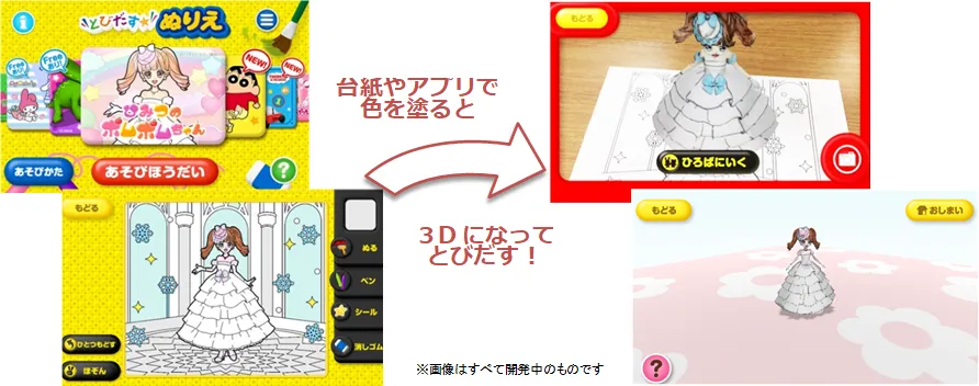 “キャラクターが3Dで目の前に飛び出す!” 新感覚ぬりえアプリ【とびだすぬりえ】に 講談社「ひみつのポムポムちゃん」が新登場