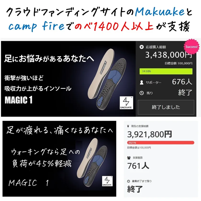 ◆インソールMAGIC 1はクラウドファンディングにより支援により商品化されました