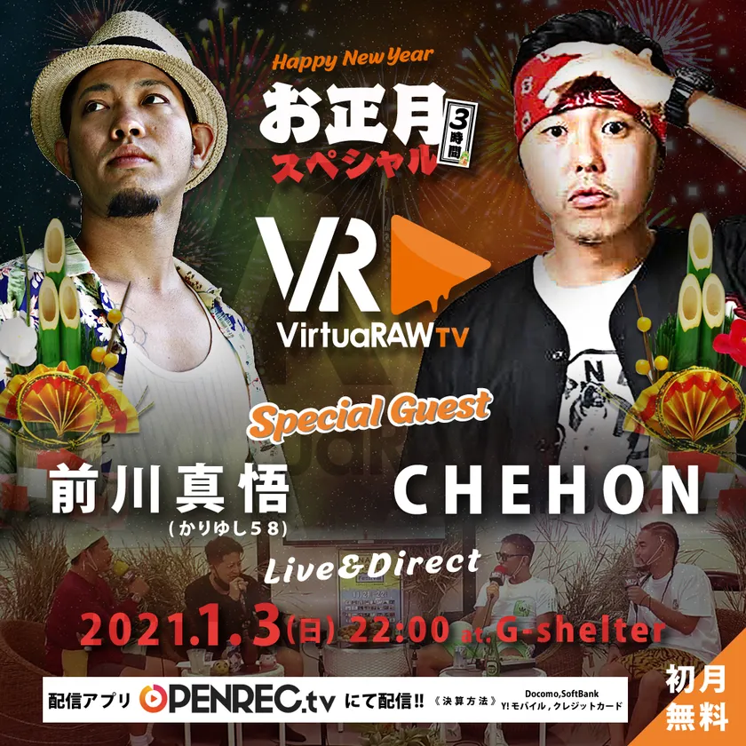 前川真悟(かりゆし58)やCHEHONをゲストに迎えた特別企画 「お正月3時間スペシャル」が2021年1月3日に放送決定! ~月額制へ生まれ変わったオンライン番組 「VirtuaRAW.tv」(今なら登録無料)~