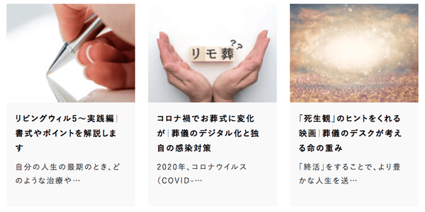 そのほかにも読み応えのある記事を多数掲載しています。コンテンツを読むことで、「終活」を考えるきっかけやヒントを得ていただけたら幸いです。
