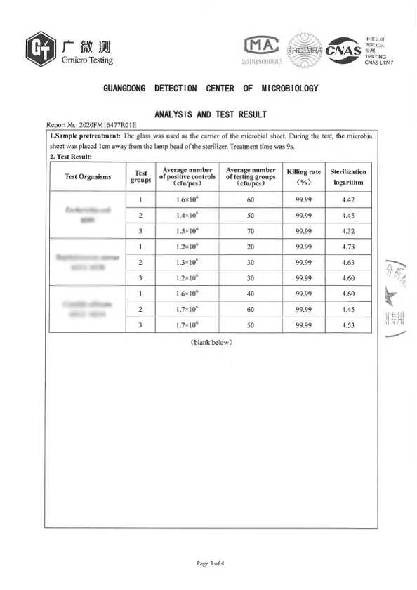 1) UV強度(照度)が8630 → 13576μw/cm2にアップしました。