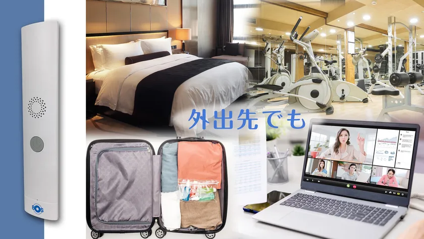 帰宅直後の衣服・靴・カバンなど、そして飲食店やホテルなど外出先で机や椅子、ベッドにも手軽にご使用いただけます。