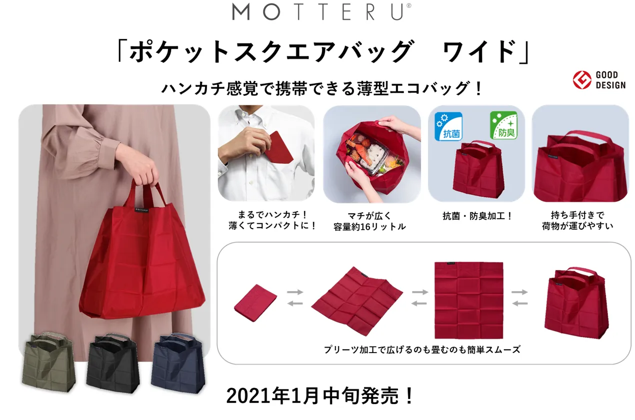 株式会社トレードワークス(本社:東京都渋谷区)は、エシカルブランド「MOTTERU(モッテル)」より、グッドデザイン賞を受賞した「ポケットスクエアバッグ ワイド」を1月中旬より発売します。