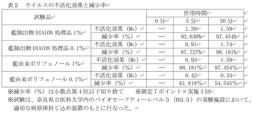 藍由来抽出物による新型コロナウイルスに対する不活化効果の評価