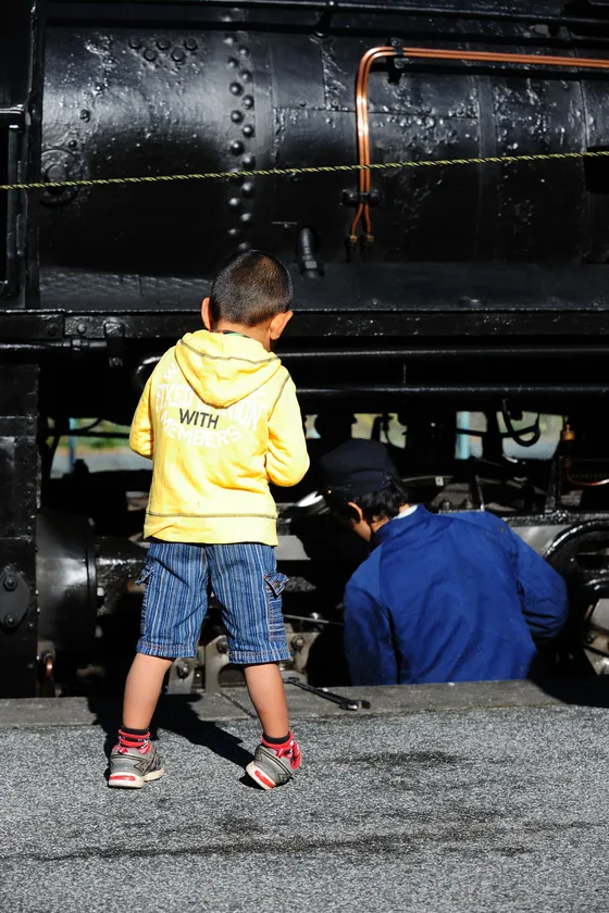 ◎普段入ることのできない車両基地で、営業運転前のSLの様子や点検作業を見学できる。