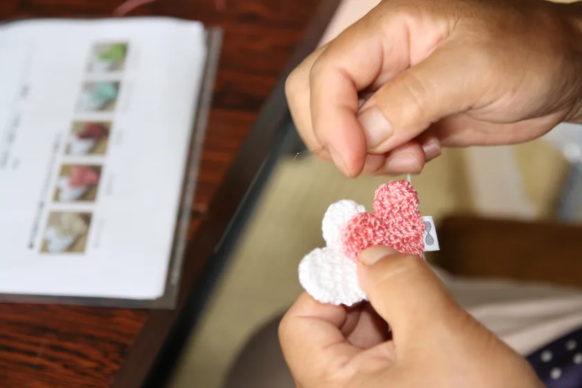 一番人気のハートブローチ 編み手さんによって形に個性が出る