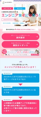 ヒューマンアカデミーではJAVAプログラミング講座などを多数用意。女性向けのピンクを基調としたスマホ版LPは、講座の価格、期間、内容が完結にまとめられていて、資料請求や体験も大きなボタンでわかりやすく、スマホからもすぐにアクションがとりやすい構成となっています。