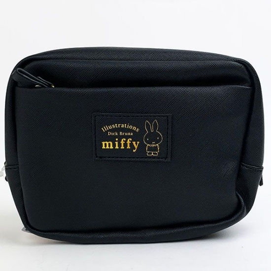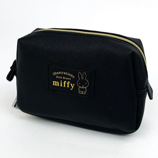 まずは、使い勝手のいいポーチをご紹介♪シックな黒に、ゴールドの箔押しやファスナーが効いていて、大人っぽいデザインですよね。白ベースが多いミッフィーには、珍しいデザインです。