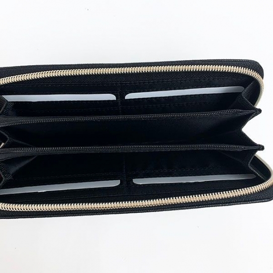 ファスナーを開くと真ん中にファスナー付きの小銭入れがあります。両脇にはカードが入れられるポケットが複数あるので、仕分けにも困りません