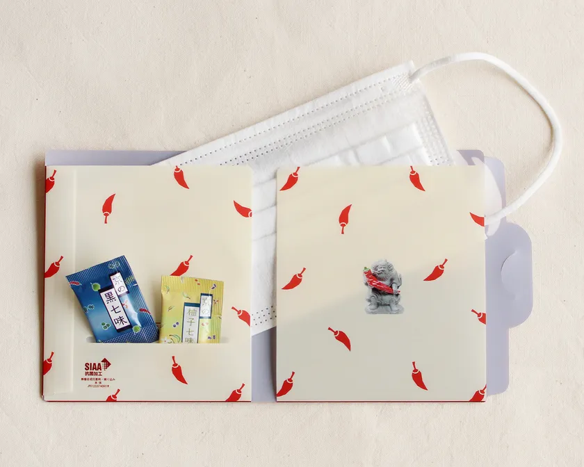また、“七味の新しい外食様式”という、京都の七味唐辛子専門店からの新提案として、中には使い切りタイプの七味・一味唐辛子が2袋収納できる切り込みポケットも。