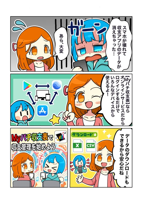 データはクラウド上に保存されるので安心。スマホの紛失や機種変更時のデータ移行も必要ありません。データをダウンロードして保存することもできます。