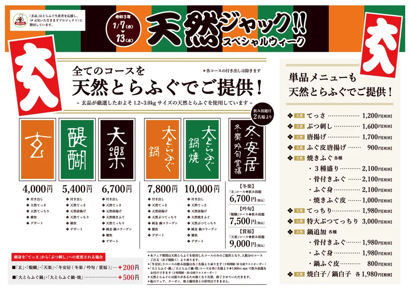 【創業40周年記念 天然ジャック!とらふぐスペシャルウィーク】