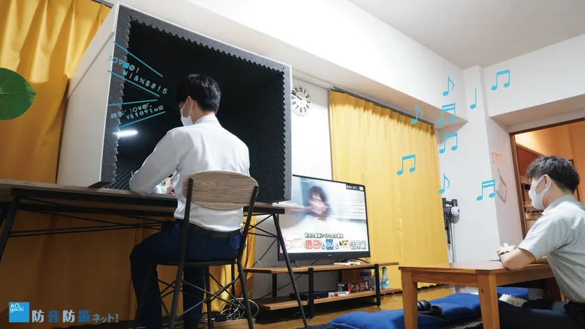 ・オンラインミーティングの音声を大きく防ぎ(吸音)、外部への影響を小さくします。