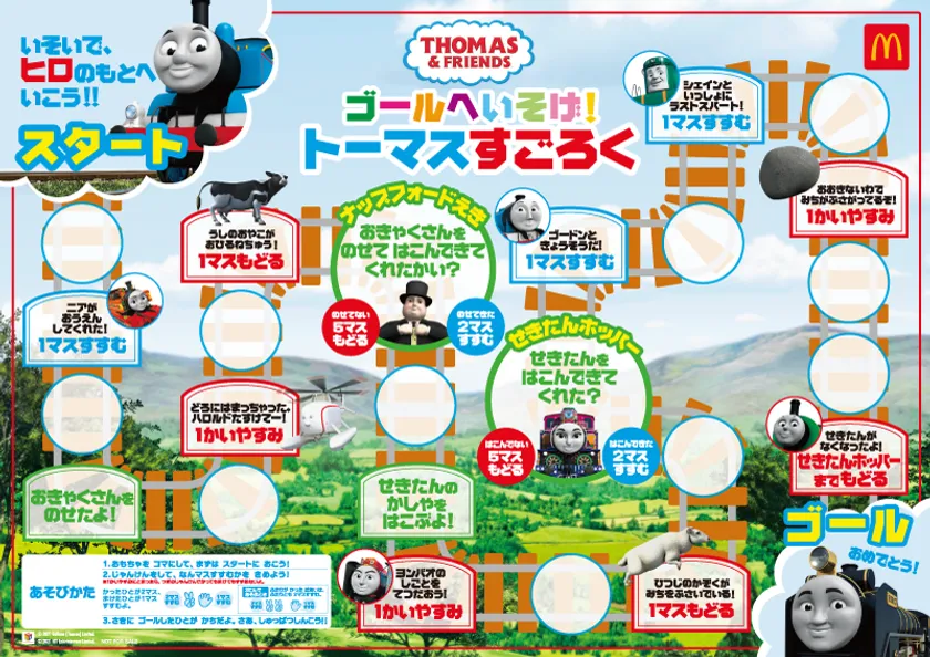 また、1月9日(土)・10日(日)・11日(月・祝)の3日間は、ハッピーセット「きかんしゃトーマス」を1セットご購入につき「きかんしゃトーマスすごろく」をプレゼントいたします。