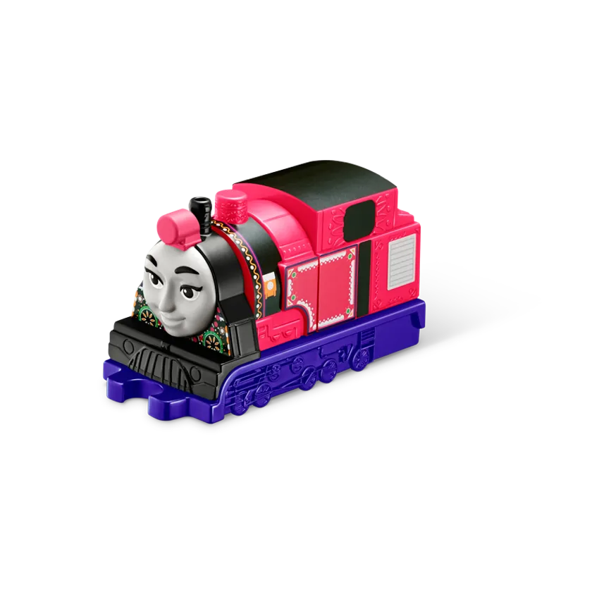 ハッピーセット「きかんしゃトーマス」には、トーマスと仲間たちのブロックを組み立て、手転がしや連結させて遊べるおもちゃ6種が登場します。今回のおもちゃは想像力や色・形の認識を育むこと、そして多様性について知ることをテーマとしています。カラフルな車体のブロックを自分の手で組み立て、「きかんしゃトーマス」の世界を思い浮かべながらきかんしゃを走らせて、自由に想像を楽しむことができます。ソドー島で活躍するトーマスはもちろん、日本で活躍しているヒロ、ケニアからやって来たニア、インドで活躍するアシマなど、出身地や性別も多様なきかんしゃたちがラインアップされており、それぞれのきかんしゃたちが活躍する国や島に住む生き物などについて知ることができるカードも付いています。複数あれば連結して遊べるほか、それぞれのきかんしゃたちはもちろん、彼らが活躍する国や島に住む生き物などについても、遊びながら多様性を学べます。