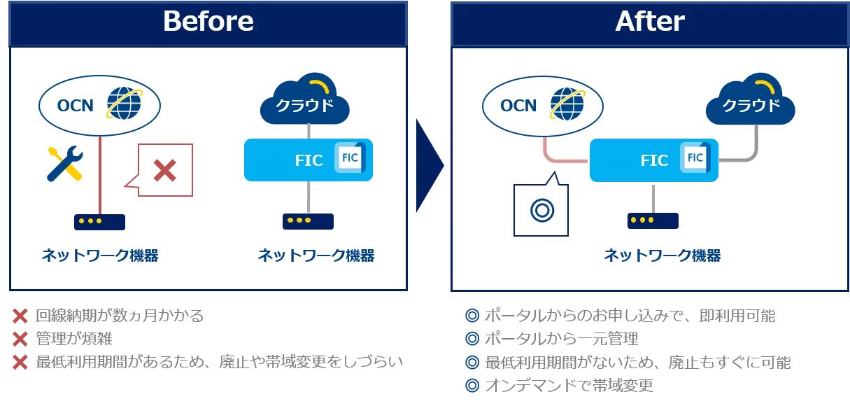 ・開通作業、帯域変更、OCNのグローバルIPアドレスの払い出しなどをポータルサイトからオンデマンドで実施可能。