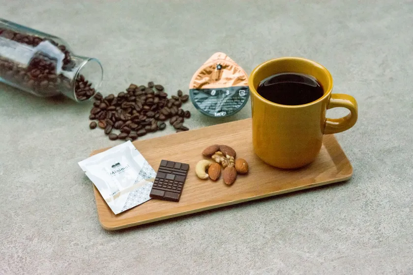コーヒーは、ストロベリージャムを思わせる濃縮された果実のような甘みを感じる『ホンジュラス エルプエンテ農園』と、ローストナッツのような甘みと明るくフルーティな酸味が溶け合う『ブラジル&ホンジュラス Ramo de rosas(ラモ デ ローサ)』、2種類のカプセルをご用意しました。あわせるチョコレートによってコーヒーの持つ風味が多彩に変化する様子を是非ご体感ください。