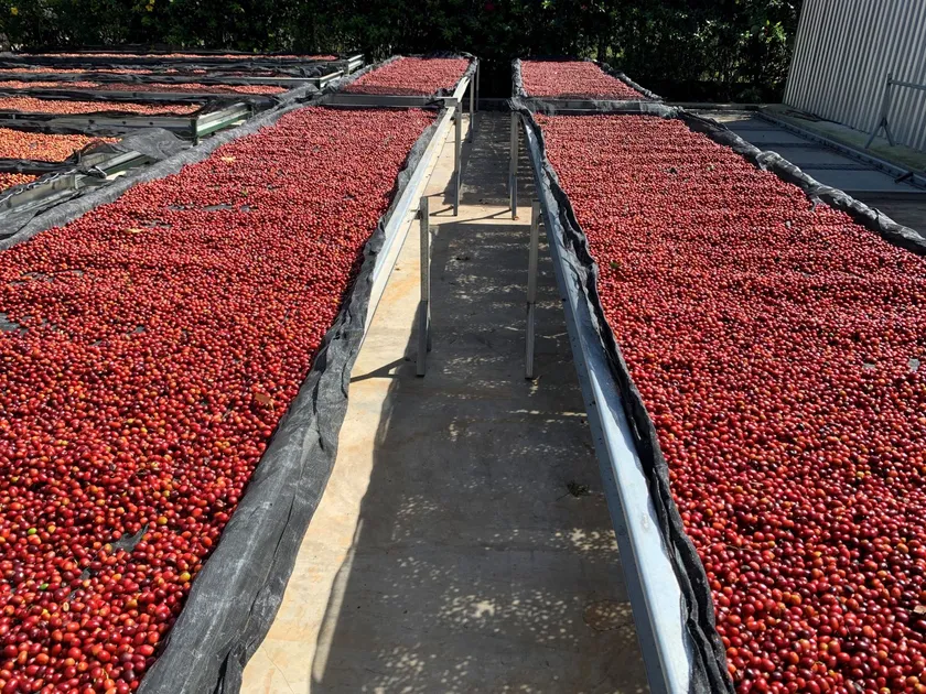 また果実を広げたままだと乾燥度合いにムラが出てしまいますが、毎日定期的にかき混ぜることで、均一に乾かすことができます。このひと手間を惜しまないことで、甘さがありながらも、よりクリーンな飲み口に仕上がります。