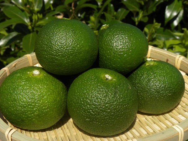 正式名称は「長門ゆずきち」といいます。外観はスダチに酷似しており、果汁の性質は、ユズやカボスのように強い香りは無く、酸味も控えめなので、いろいろな料理に使ったときに、素材の味を損なわず、爽やかな香りとまろやかな酸味が特徴です。また、11月になると直径5cm以上になり、果皮が黄色く着色し、果汁も少し甘みが加わり、よりマイルドな食味になるという二つの顔をもつ、下関市・長門市・萩市で栽培されている山口県のオリジナル柑橘です。