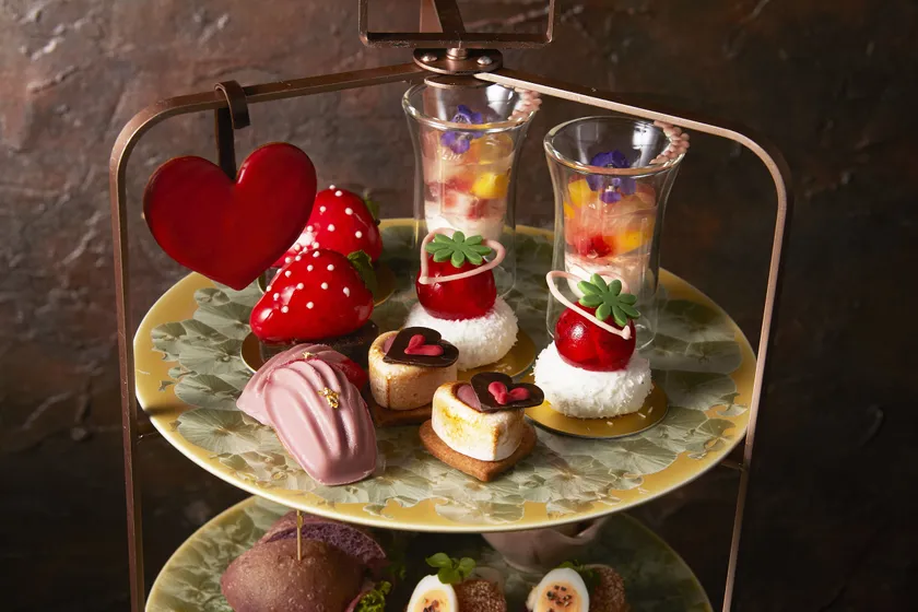 ストロベリーづくしのスイーツをお楽しみいただける人気の“ストロベリー アフタヌーンティー”を期間限定でハートをデコレーションしたバレンタイン特別バージョンとしてご提供いたします。“苺のムースとガトーショコラ”や“苺のショートケーキ”など苺の形に仕上げる可愛らしいスイーツに加え、散りばめられたハートのデコレーションがバレンタインシーズンを盛り上げます。