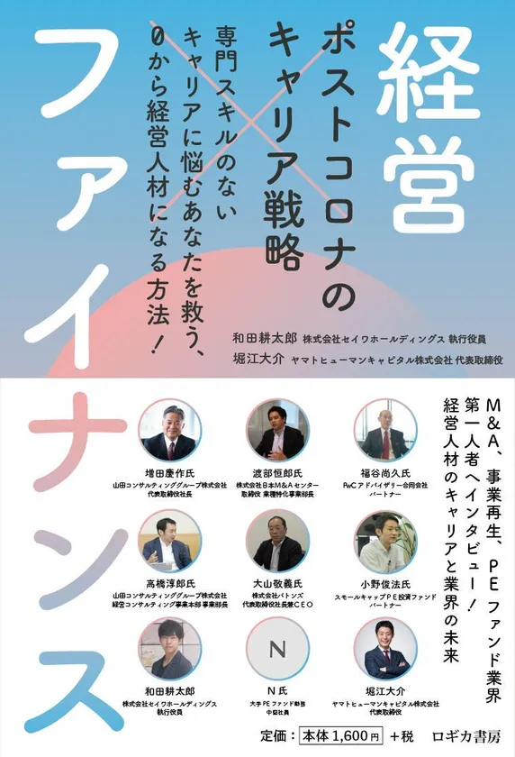 株式会社日本創生投資 顧問及びセイワ工業グループ 執行役員M&A担当責任者を務める和田 耕太郎と、M&A/事業再生/ファンド業界への転職・採用支援を行う転職エージェント、ヤマトヒューマンキャピタル株式会社(所在地:東京都千代田区)の創業者であり、一般社団法人日本プロ経営者協会の代表理事を務める堀江 大介は、『ポストコロナのキャリア戦略 経営×ファイナンス』を株式会社ロギカ書房(所在地:東京都千代田区 代表取締役:橋詰 守)より、2021年1月23日に発売いたします。