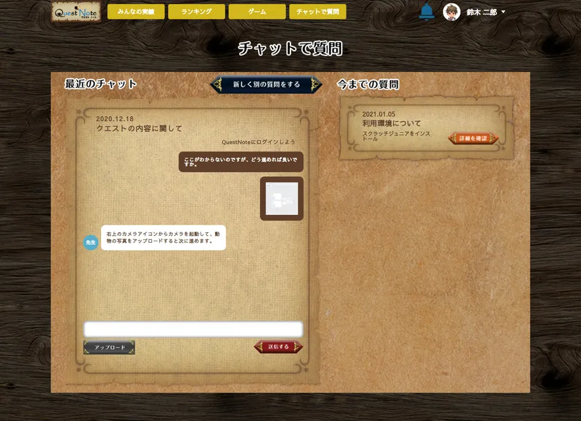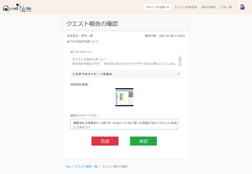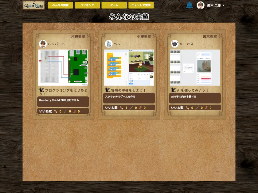 生徒は動画を見ながら「クエスト」で指示された内容をクリアし、課題を提出することでキャラクターを育成することができます。