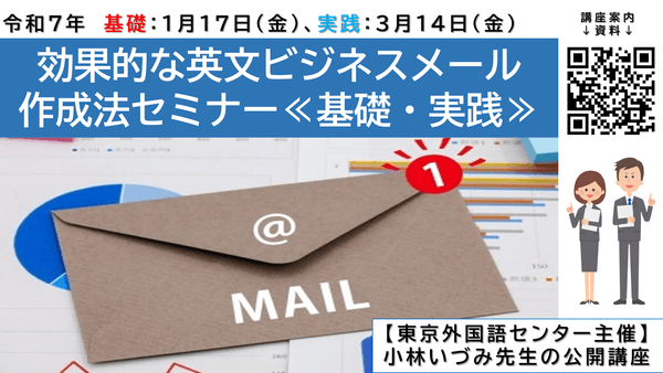 東京外国語センターは、公開講座「効果的な英文ビジネスメール作成法」セミナーをオンラインで開催します。