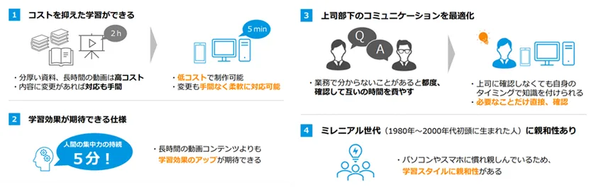 1分~5分程度の短い学習コンテンツをオンラインで提供し、学習する人が好きなタイミングで学べる学習スタイルのことです。