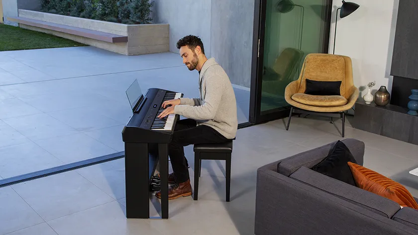 『FP-60X』、『FP-30X』には、「スーパーナチュラル・ピアノ音源」を搭載。中級モデルの『FP-60X』は、空間の響きを楽しめるアンビエンスを新たに搭載し、臨場感のある演奏が可能です。また、弾き語りに便利なマイク入力端子も新たに装備しました。よりスリムで軽量の『FP-30X』は、音とタッチのバランスを見直し、より華やかで粒立ちのよいサウンドになりました。『FP-30X』は新たに、Bluetooth(R)オーディオにも対応。出力端子も搭載され、スタジオなどに持ち出して演奏する際、外部スピーカーに簡単に接続できます。
