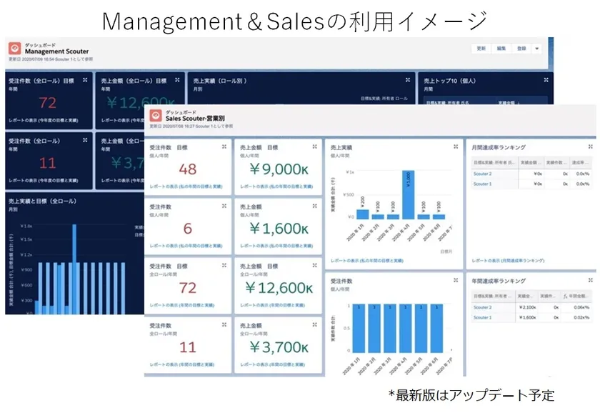 ・専用のダッシュボード:営業用、マネジメント用にあらかじめご用意