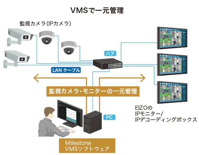 EIZO株式会社(本社:石川県白山市、代表取締役社長:実盛 祥隆)は、監視カメラ映像を保存・管理するビデオ管理ソフトウェア(Video Management Software:VMS)を提供する、業界最大手の一つであるMilestone Systems社(本社:デンマーク)の技術協力のもと、同社のソフトウェアから、当社の監視・セキュリティ市場向け製品を一元管理できるプラグインソフトウェアを開発、提供します。
