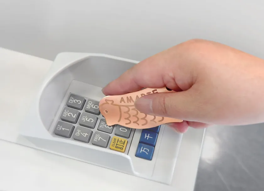 1. アマビエフックを手で握って使用する際のすべり止め、アマビエタッチでエレベータのボタンを押す際のボタンへのキズつけ防止としてシリコンゴムで製造