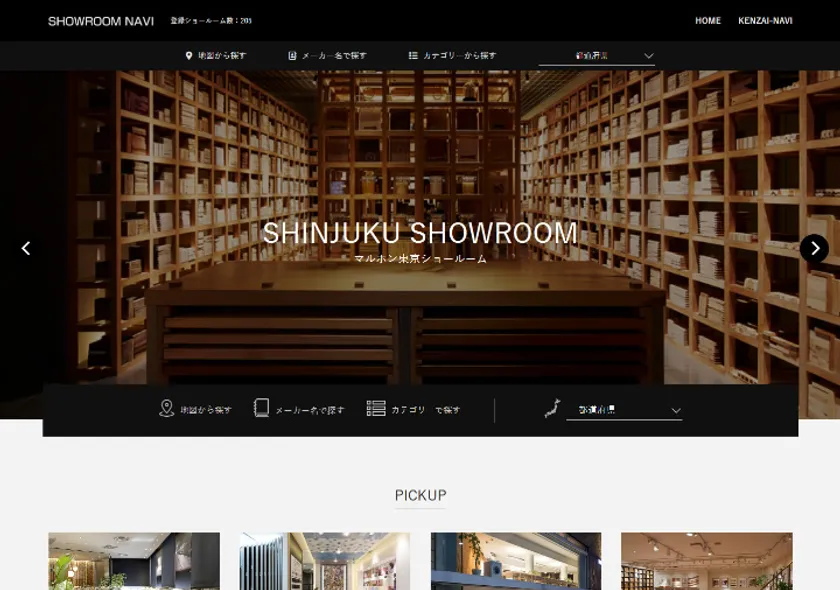 「ショールームナビ」は、建築プロユーザーの方々が建材メーカーのショールームを効率よくご利用いただく情報サイトとして2021年1月26日にリニューアルオープンしました。もともとは「ショールームチャンネル」という名前で2015年から建材メーカーのショールーム情報を紹介していましたが、地図検索など検索機能の強化、ショールーム関連製品の紹介、ショールームからのお知らせ情報配信などの機能強化やユーザビリティ向上を図り、今回の「ショールームナビ」という形でリニューアルオープンすることとなりました。