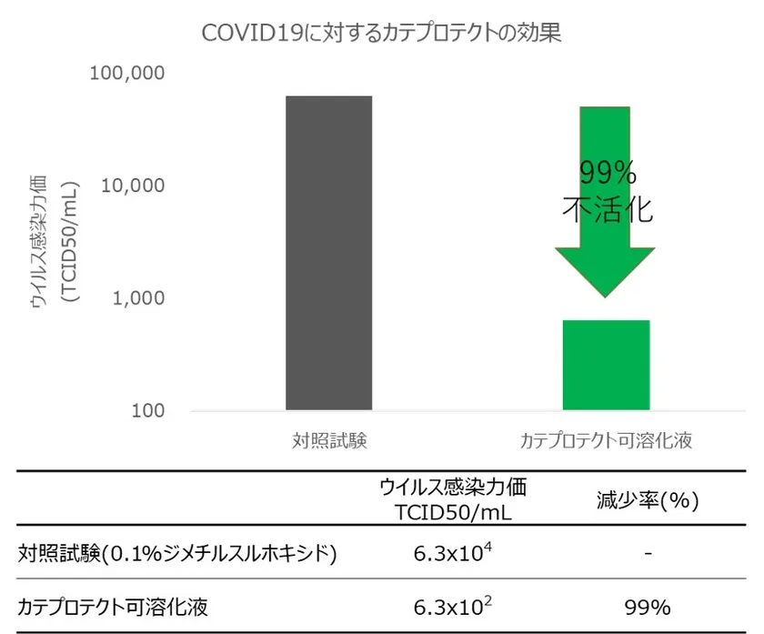 今日のコロナウイルスの蔓延に対して安全に強く抑制できる技術の開発要望を受け、カテプロテクト技術の新型を含むコロナウイルスに対する抗ウイルス効果を評価いたしました。
