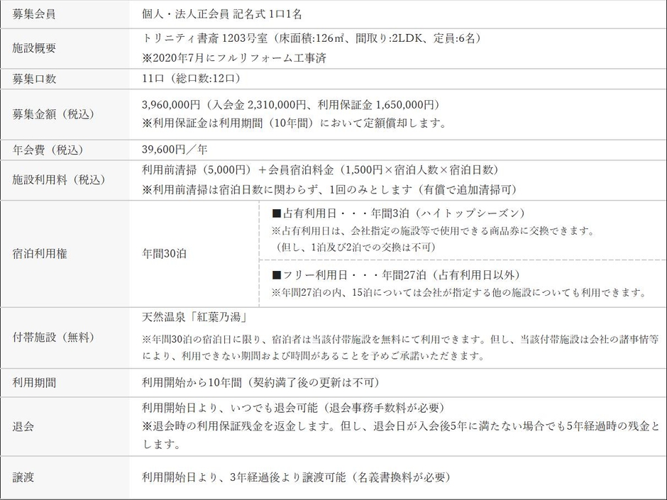 ※GW、夏休み、年末年始のいずれか 3 連泊。占有利用日は毎年タイムシェアカレンダーによりローテーションされます。