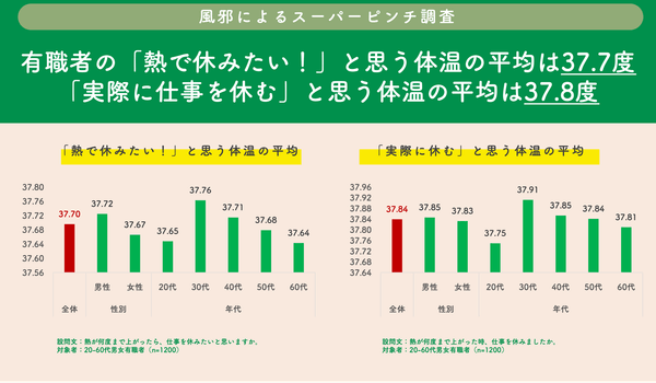 「風邪によるスーパーピンチ調査」第一弾 ビジネスパーソンは何度の熱で休む? 休みたい!と思う体温37.7度、実際休むのは37.8度と判明!