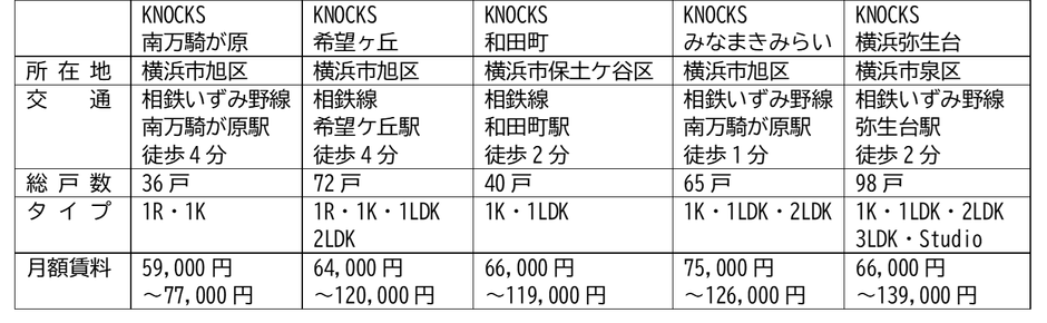 また、相鉄不動産が手掛ける賃貸マンション「KNOCKS(ノックス)」でも、駅に近い立地、分譲マンション並みに整った設備や沿線の緑豊かな環境などを理由に、単身者からファミリー世帯まで、沿線外の方にもお選びいただいています。