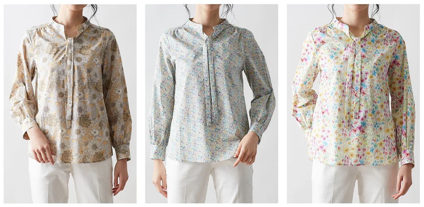 第一弾となる今回は、世界中から愛され、定評のあるリバティ社の素材を使用したフラワープリントのブラウスを商品化し、これまでご愛顧いただいたお客様への感謝の気持ちを込めて、スペシャルプライスにて販売いたします。