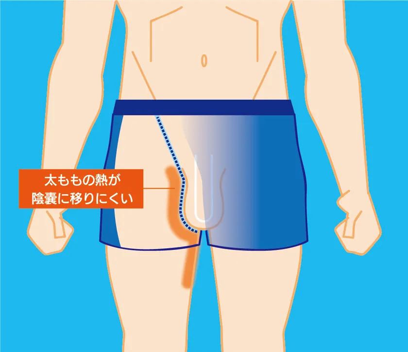 【特徴その2】大腿部の熱が陰嚢に移りにくい男性器分離構造