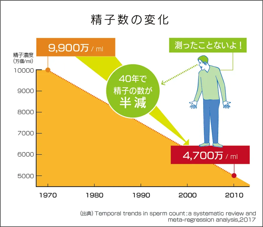 過去40年での精子数の変化
