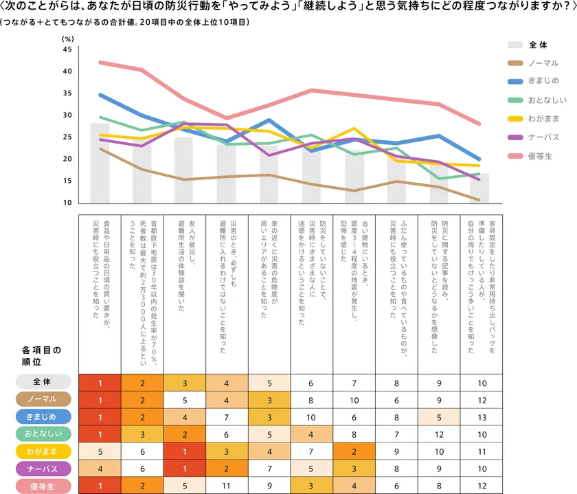 ■防災意識が高く、日頃から備えを実践しているのは「優等生」と「きまじめ」の2タイプ。