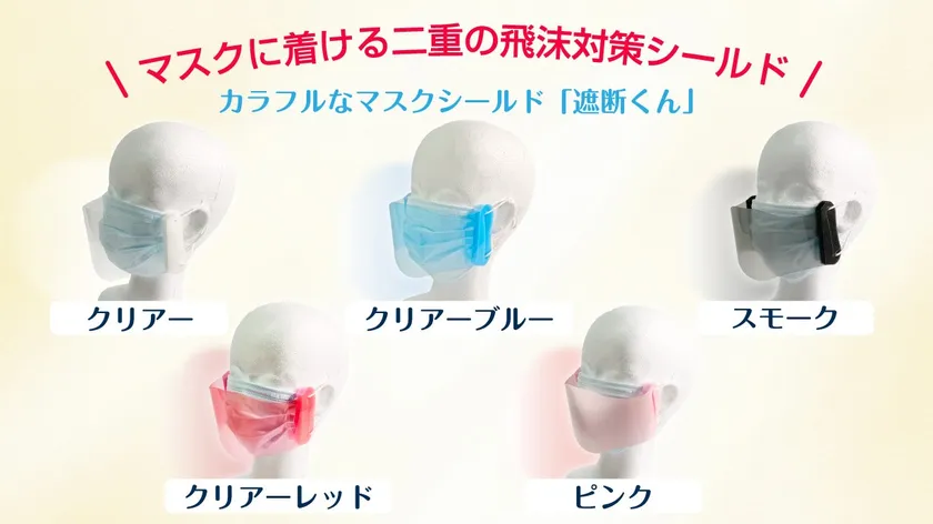 購入者続々、マスクに着ける二重の飛沫対策マスクシールド! オンラインショップ開設後、累計販売数5,000枚を超える カラフルなマスクシールド「遮断くん」