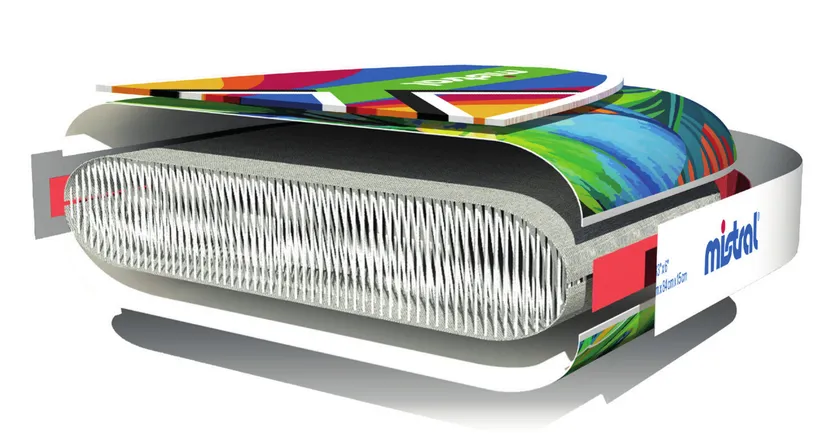 DSFLとは、デッキとボトムのPVCシートをクロス織にした極細のポリエステルドロップステッチ糸を溶解技術により一体成型したものです。既存の技術に比較し、大幅な重量の削減ができ、且つ、強度及び剛性が大幅に上昇しました。数年前までは、5,000本/インチ四方が標準(当社比)であった、ドロップステッチ糸は、DSFLでは、13、600本/インチ四方まで増加しています。結果的に、軽量で剛性が高く走行性能が高い丈夫で長持ちのインフレータブルボードが完成しました。