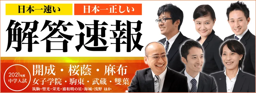 中学受験の世界で長年研鑽を積み、各中学校の出題内容や傾向を知り尽くした業界トップクラスの「中学受験専門プロ講師」たちだからこそできる、日本一「速くて、正しい」解答速報です。2016年度以来、中学受験を目指す生徒やご家庭に厚い信頼を得ている毎年恒例のイベントです。