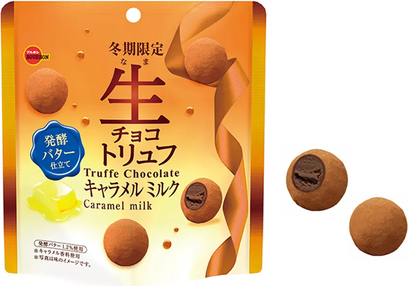 ブルボン、おいしいものを求めるニーズに対応した 贅沢大粒トリュフチョコ「生チョコトリュフキャラメルミルク」を 1月26日(火)に期間限定で発売!