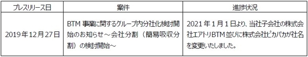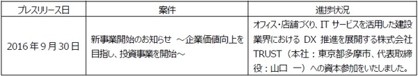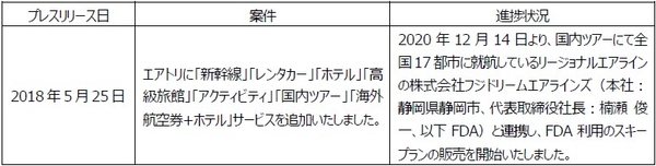プレスリリース案件の進捗状況に関するご報告