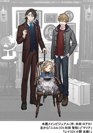 本展の朗読劇の登場キャラクター「ニコル(CV.杉田 智和)」、「レイ(CV.小野 友樹)」、「マリア」をイラストレーター本田 ロアロが描き下ろしました。